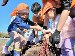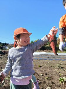 芋が抜けると「おっきい‼️」「おもたいなぁ」と目を輝かせる子どもたち👀✨