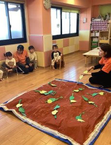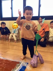「〇〇くんこんなかたちー❗️」と平べったい形を見せてくれるお友だちもいましたよ🌱