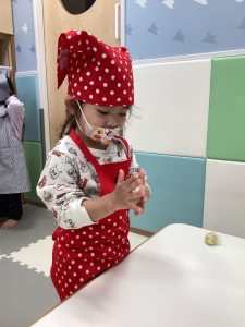 「ぎゅっぎゅ🎵」とおにぎりのように丸くするお友だちや