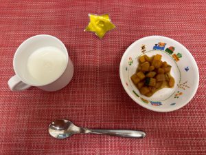 今日の給食は、そぼろ丼で食べやすいメニューでした!「おいしい♪」お味噌汁は「あったかいね♪」と給食を味わっている様子でした!(^^)!