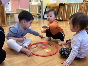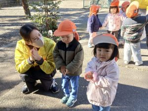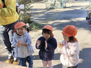 保育士の真似をして手を合わせたり、お辞儀をする子どもたち🍀