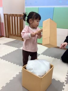 コツを掴むとどんどん入れて「できたよ❗️」と得意げに保育士に見せてくれました😆✨