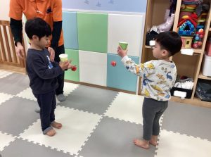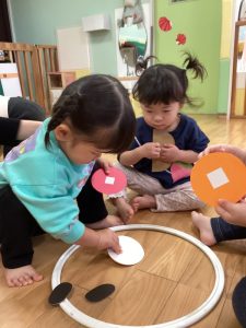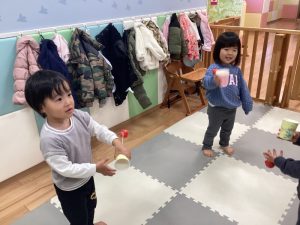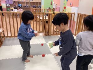 りんご組さんは手作りけん玉で遊びました🎵