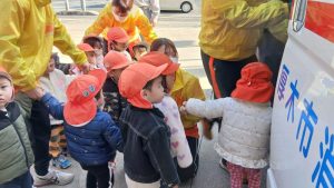 今回の見学だけでなく、いつも快く消防車や救急車を見せてくださる消防士さん👩🚒
