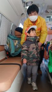 救急車に乗ると、キョロキョロと見渡しながら中を見ていた子どもたち👀✨