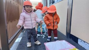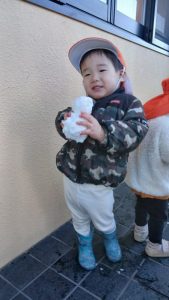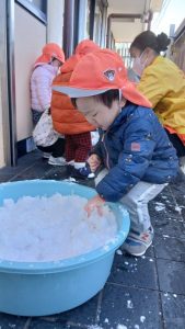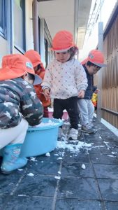 もも組、いちご組さんはエントランスで雪遊びをしました🧣