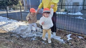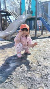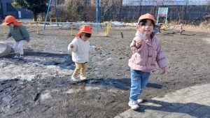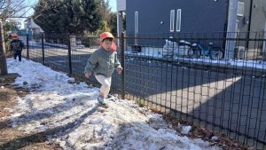 翌日公園に行くとまだ雪が残っており「ゆきだ‼️」と嬉しそうな子どもたち