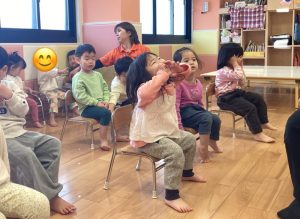 ”ちいさなたいこ”のフレーズでは指先で小さく手を叩く子どもたち🙌🎵