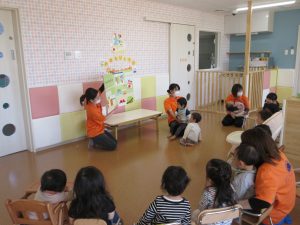 お誕生日のお友達を前にして、皆で丸く円になってお祝いしました![]()