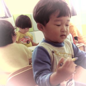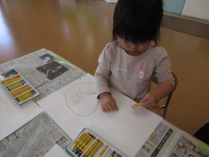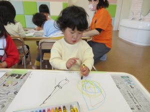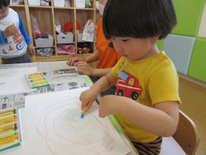 今日から来たお友だちもクレヨンを使ってのびのびと描いていましたよ