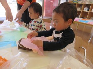 お気に入りのお人形に花紙をかけてあげる姿もありましたよ