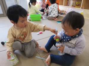 子どもたちは園や保育士にも慣れ、お友だち同士の関わりも見られるようになってきました![]()