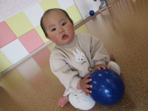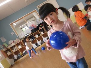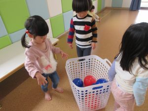 転がしたり投げたり…たくさん遊んだ後はお片付け![]()