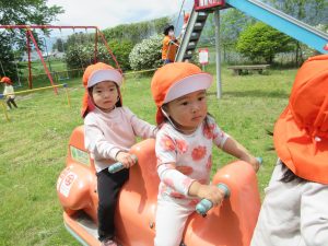 保育園にはない遊具で遊べたり、春の自然を見つけて大満足の様子の子どもたちでした![]()