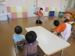 「みんなの鼻はどこかな~?」と、絵本の中の顔と一緒に自分のお顔のパーツを探していました![]()