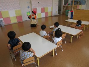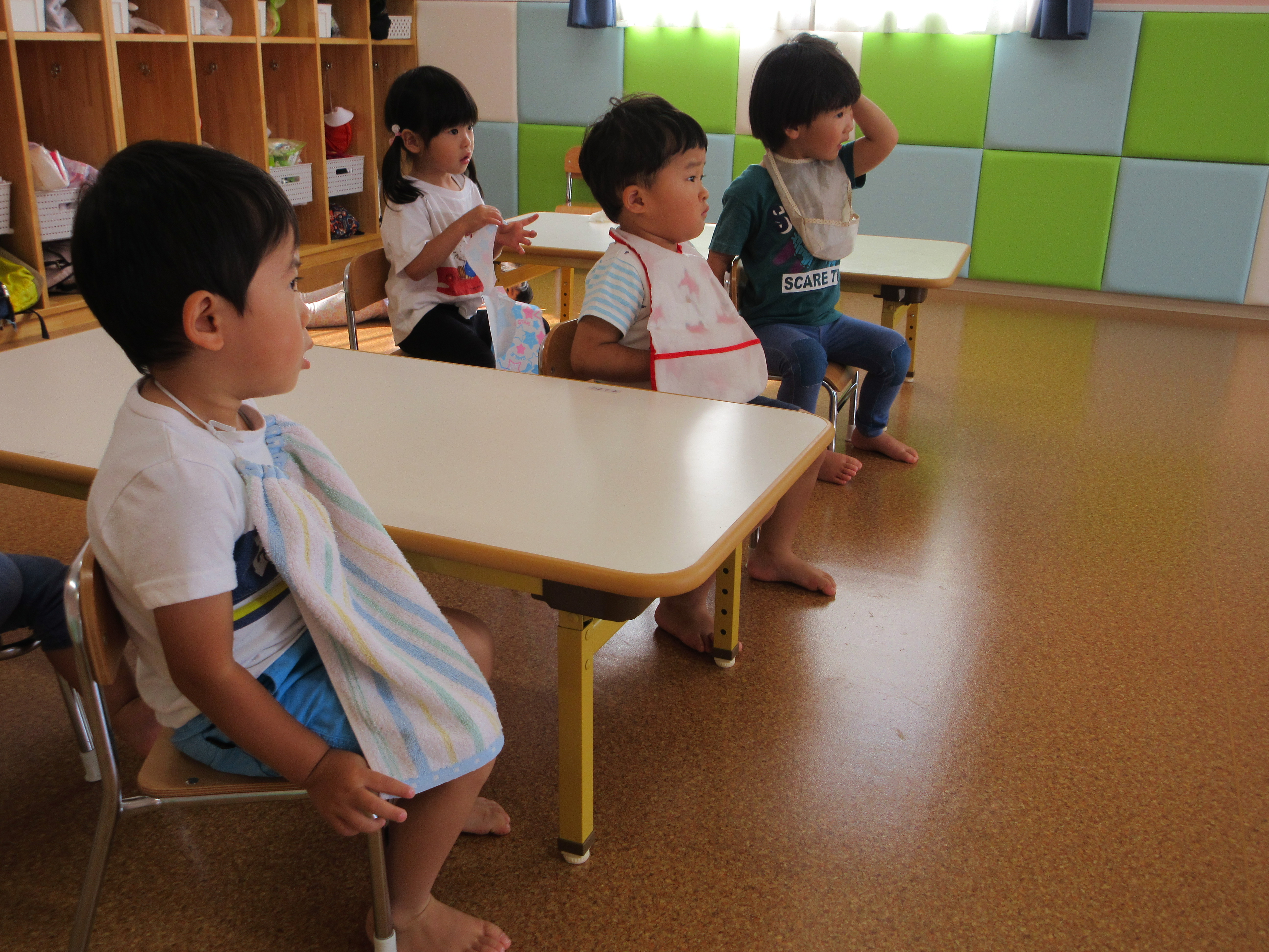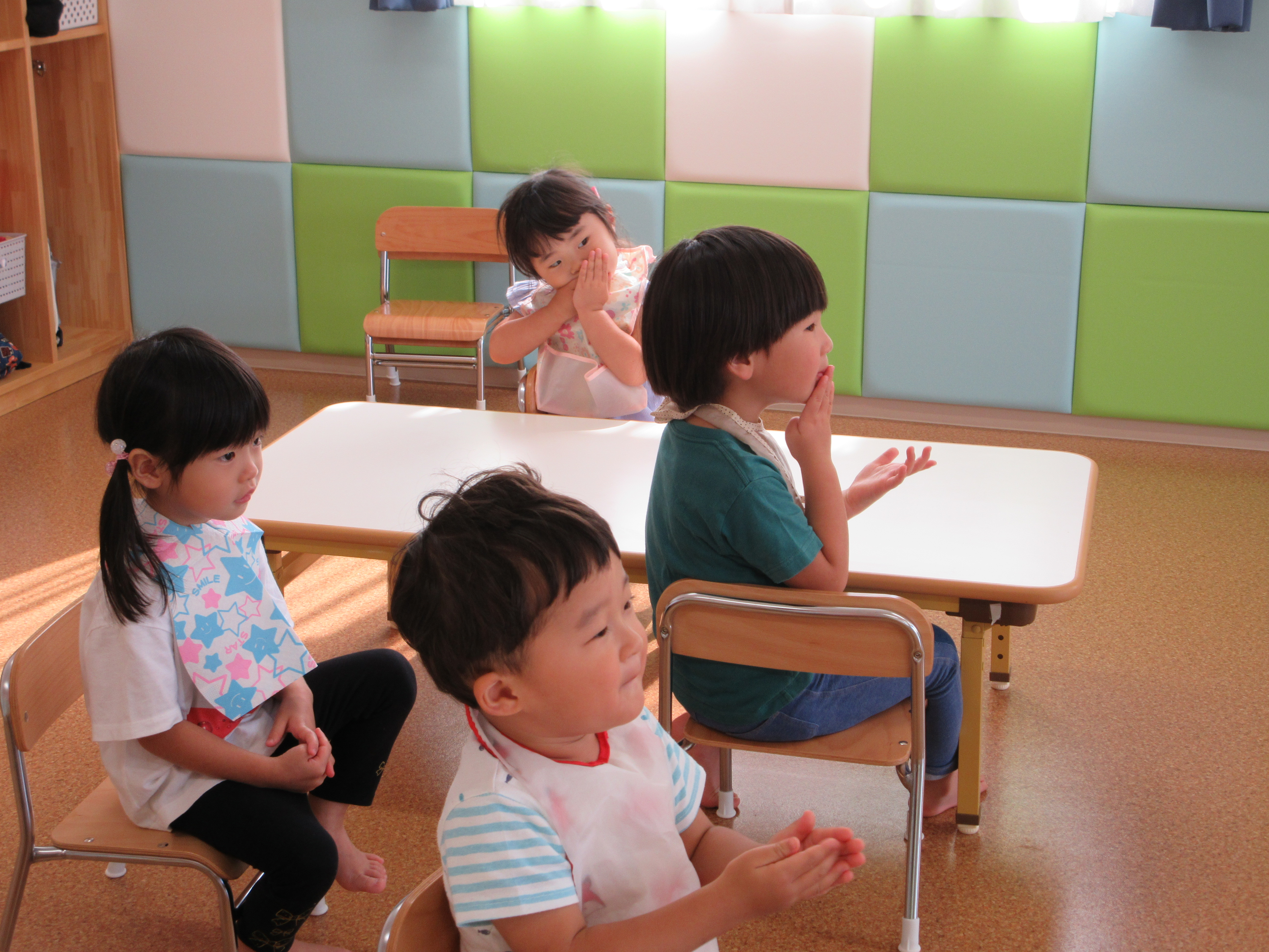 保育士と一緒に手を前に出したり口ずさむ姿も見られました![]()