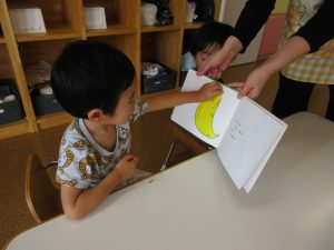 車が好きなお友だちに大人気で、読み終わった後もお部屋の本棚にあるのを見つけて自分で読んでいる姿もありました![]()