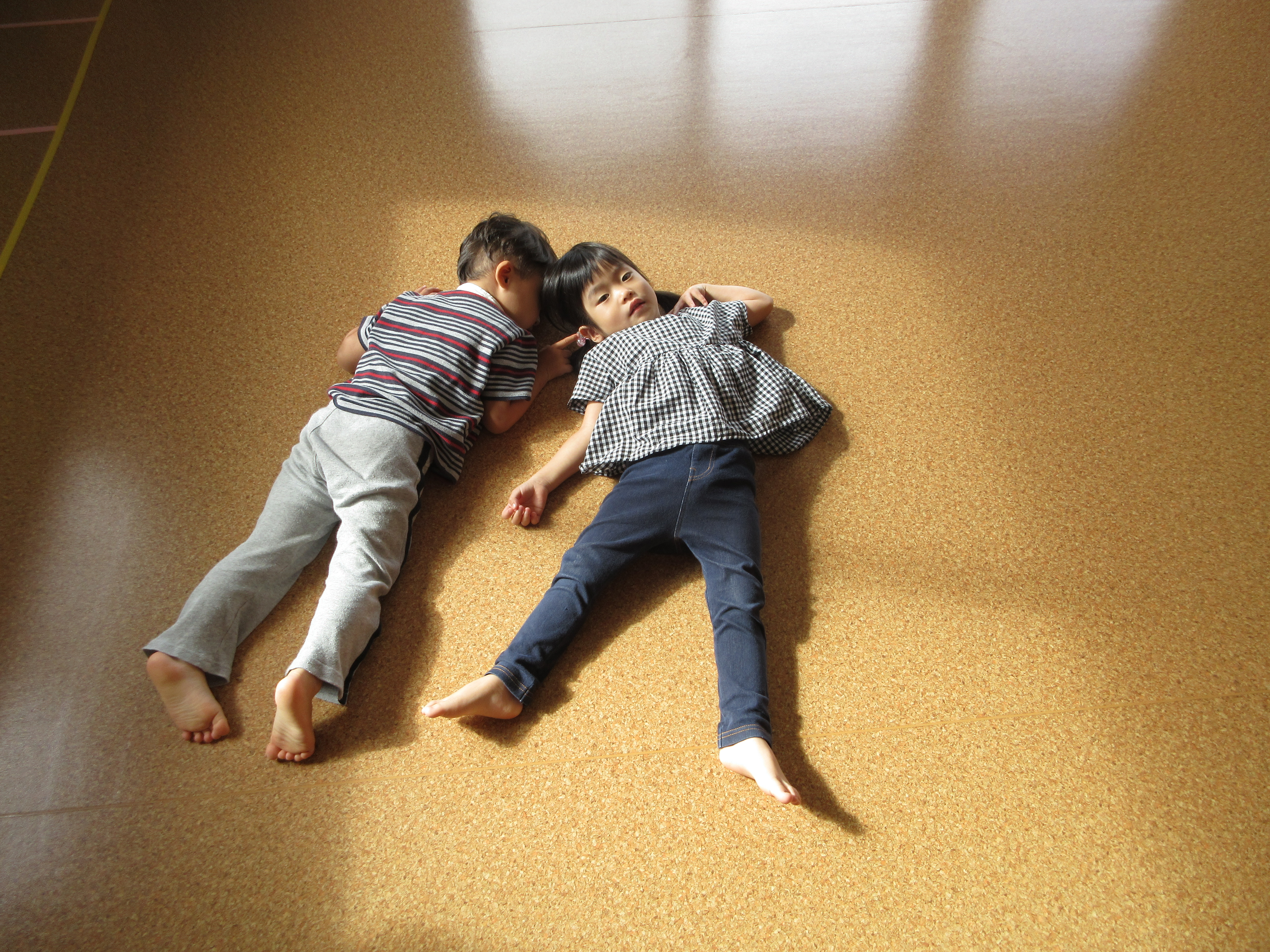 日の当たる床をゴロゴロ~していました