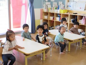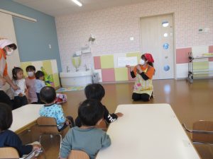 ももぐみのお友だちは美味しそうなおにぎりを食べている真似っこかな![]()