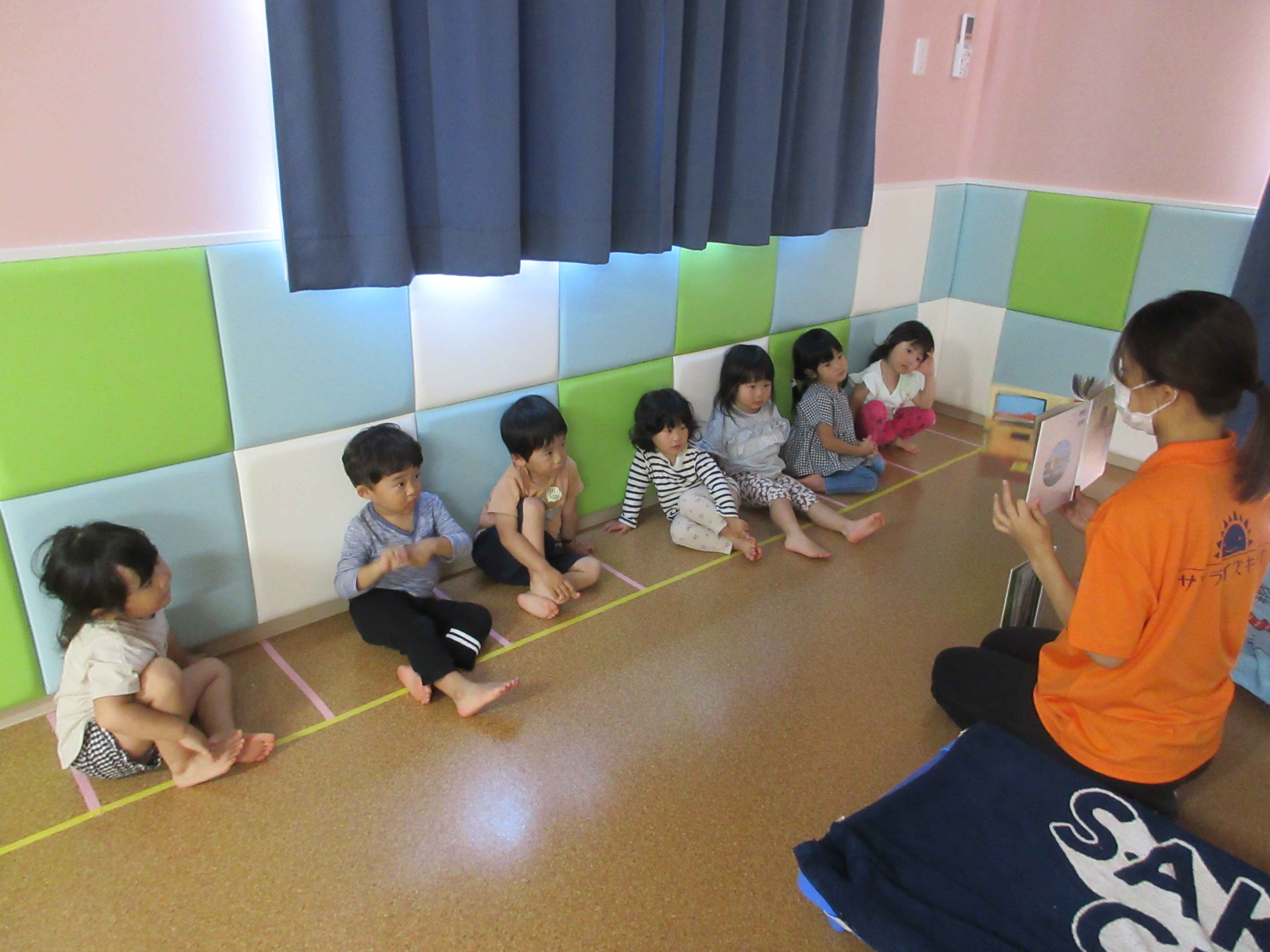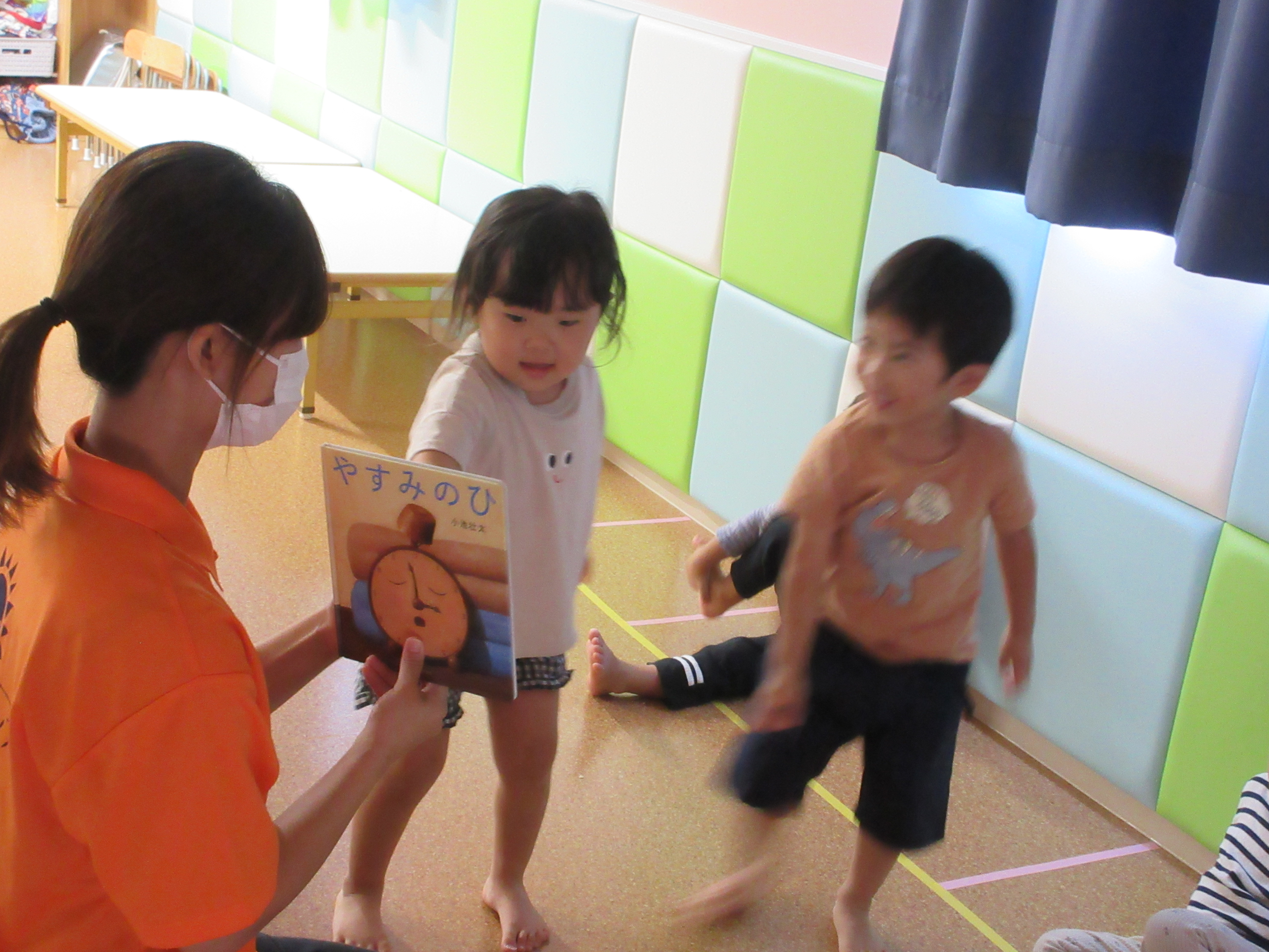 それを見て「お仕事してない~!!」「こんなところにいる~!」と、大笑いの子どもたちです![]()