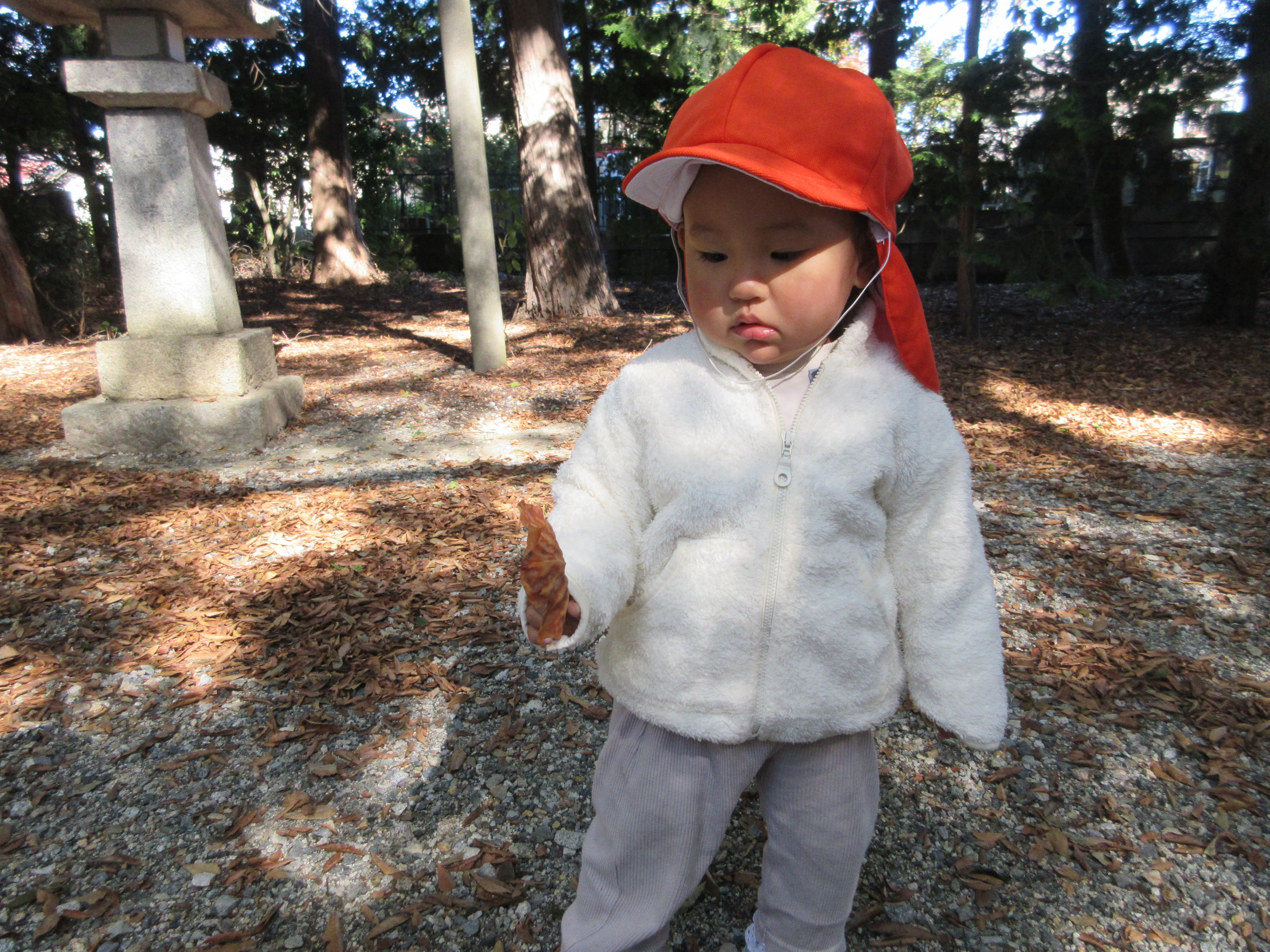 ももぐみさんのお友だちも、葉っぱを拾って見つめたり踏むとカサカサ音が鳴るのを喜んでいました