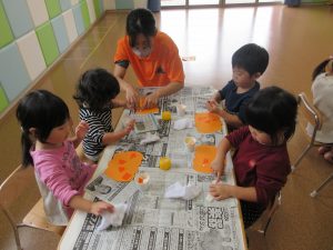 今週は秋の制作?や、ハロウィン会?に向けて各クラス制作をしました