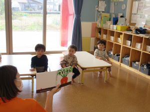 いちごぐみのお友だちは玉ねぎの葉っぱを覚えて「たまねぎ~?」と答えてくれます![]()