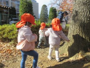 冬の寒さに負けない元気で丈夫な体を作って、これからもたくさん戸外や散歩に出かけて遊んでいきたいと思います