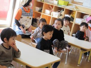 朝のおやつの前に【さんかくならんで】という絵本を読みました?