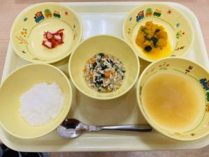 ※今日は七草粥の日です。無病息災を願い、園では七草風あんかけご飯を給食で食べました。みんな、おかわりもたくさんしました♪
