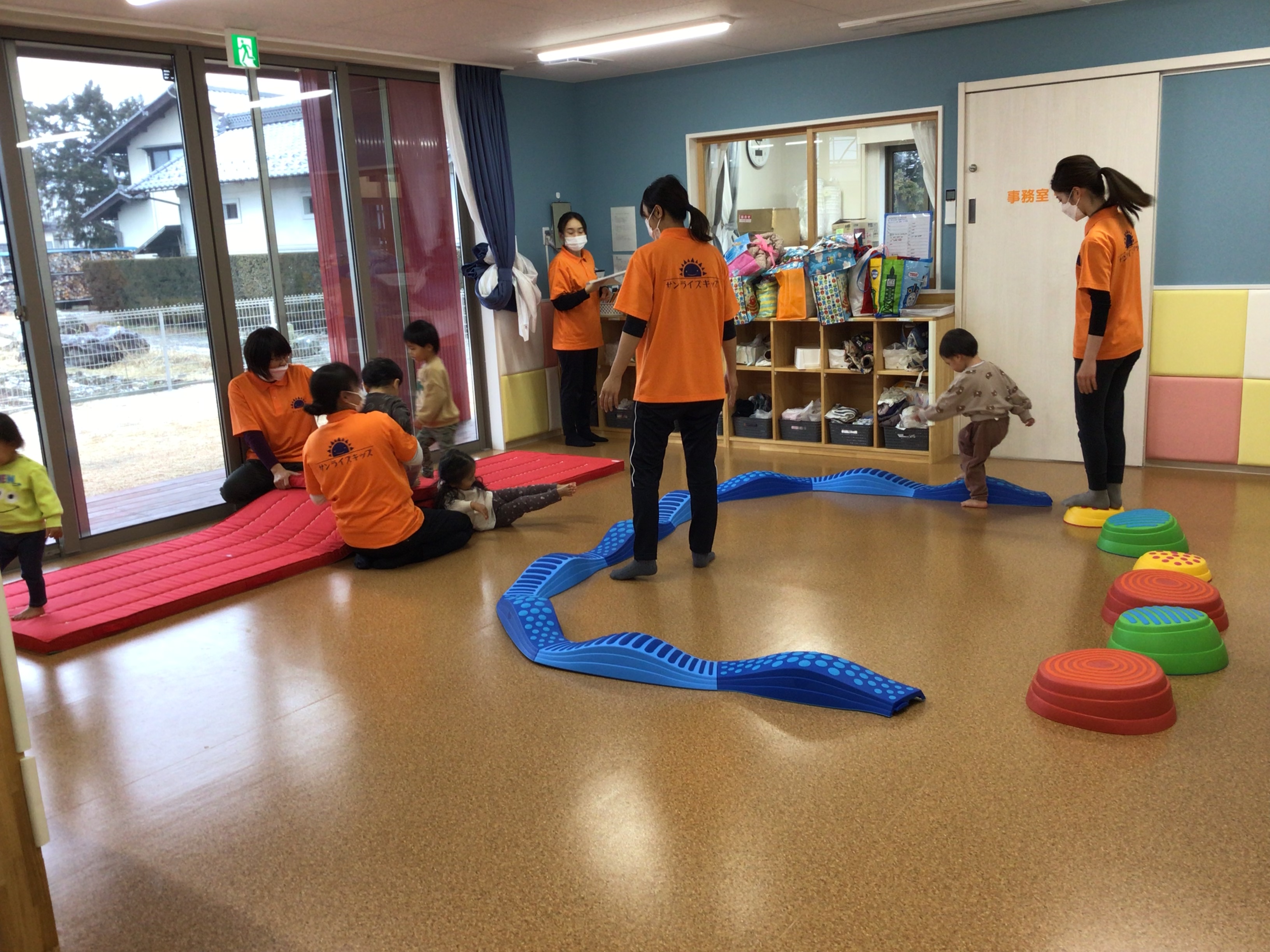 障害物を置いたりマットを置いたりして、サーキットをして遊んでいます![]()