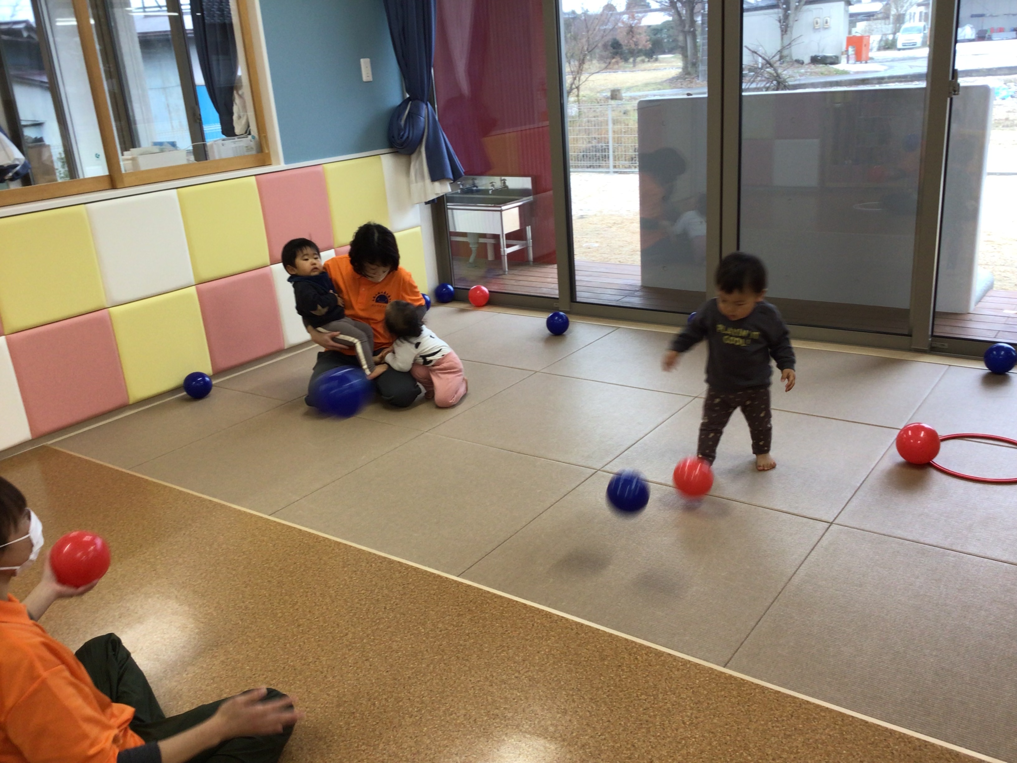ボールをたくさん出して、転がしたり、投げたり。。。![]()