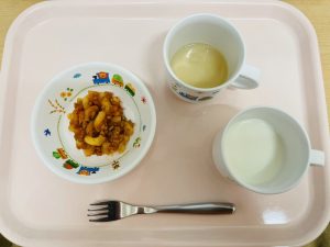 ※今日は、お魚料理を進んで食べていました!お野菜は、なかなか進みませんでしたが全部食べることが出来ていました。頑張って食べている姿もとても可愛いですね♪