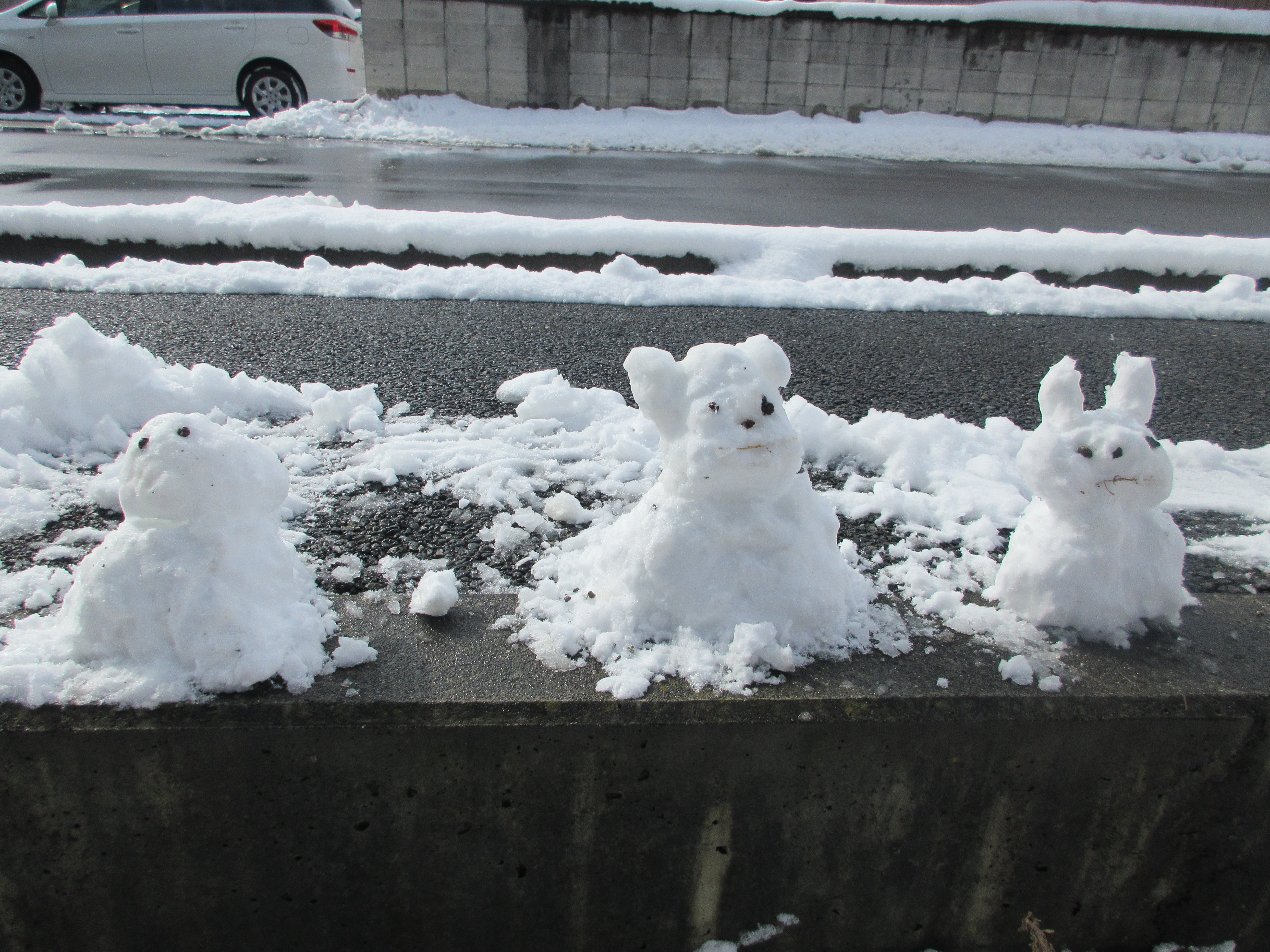 お耳の付いたかわいい雪だるまが完成しました![]()