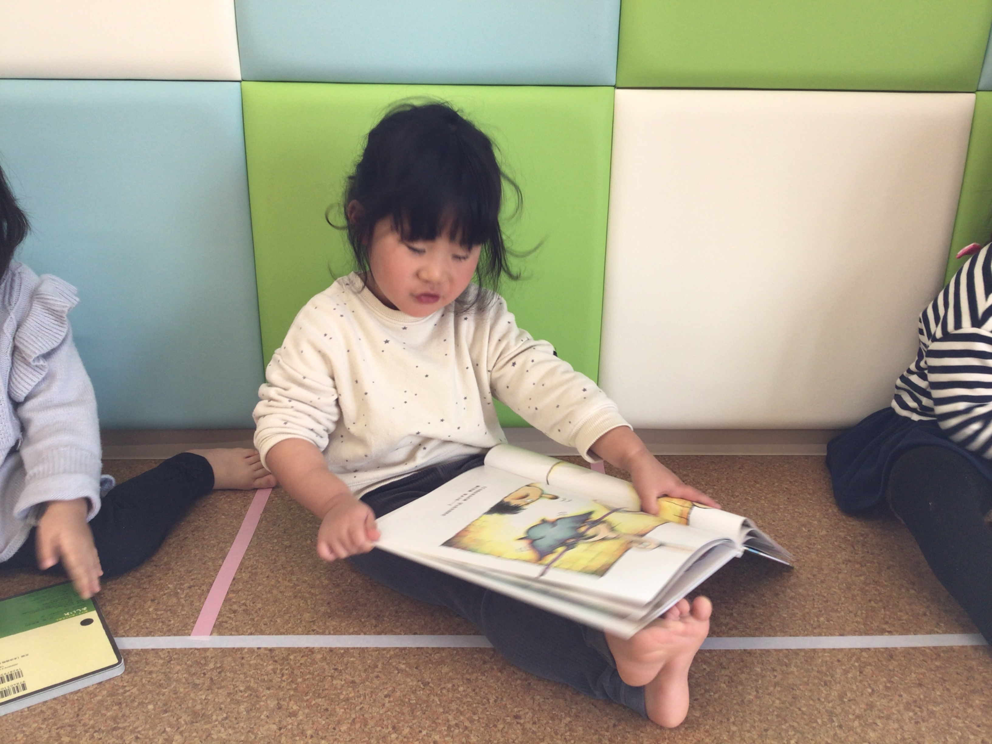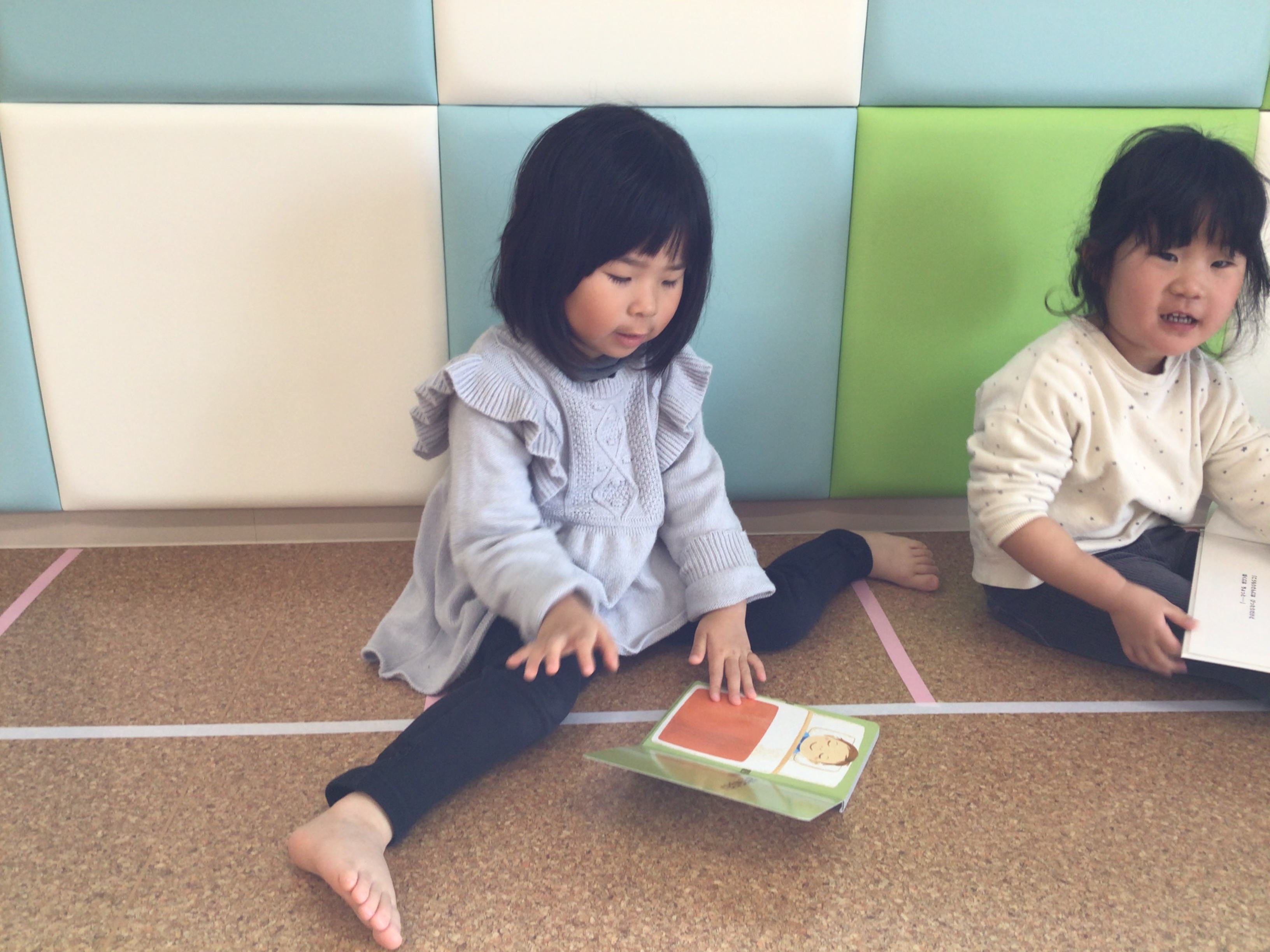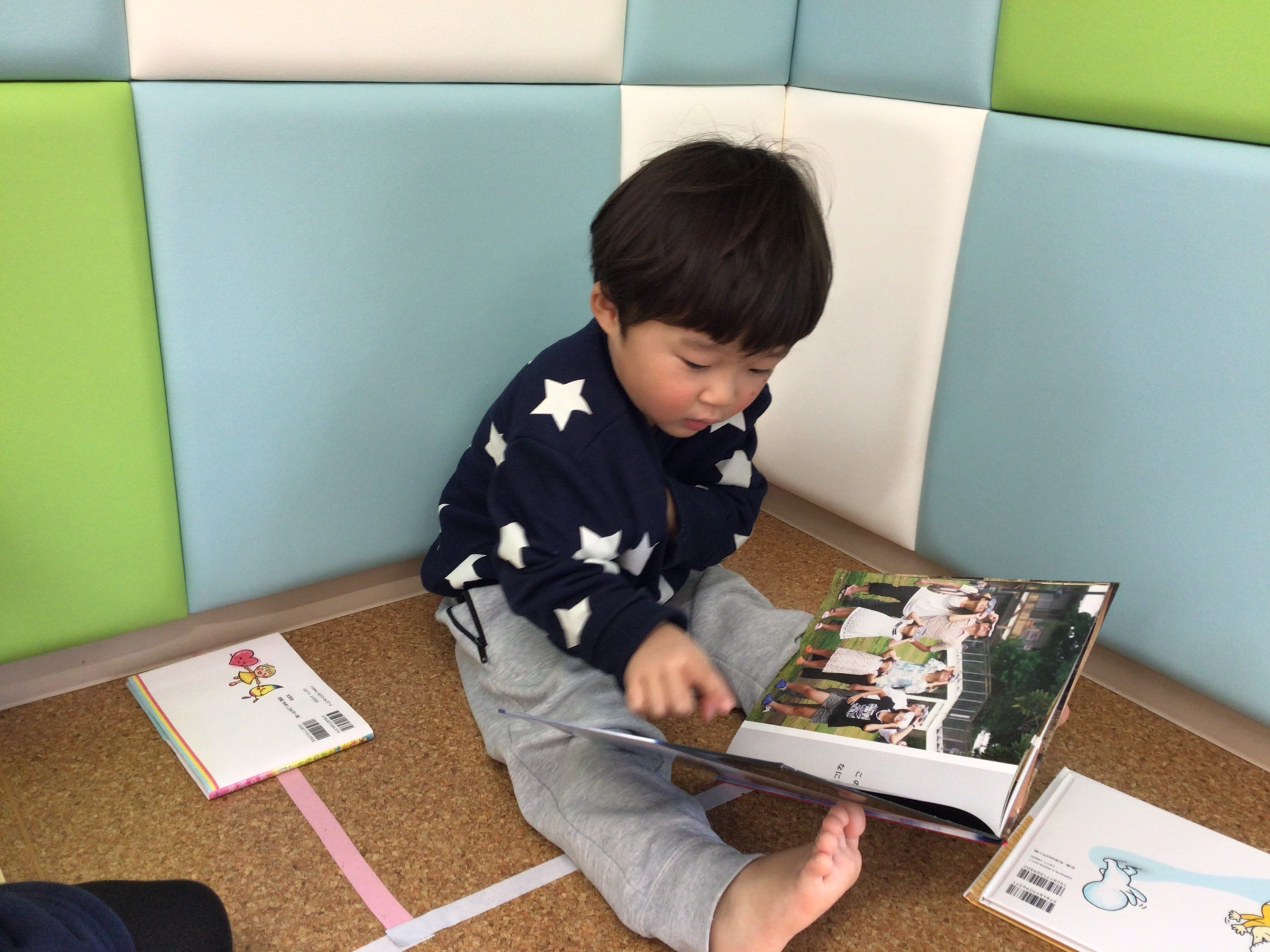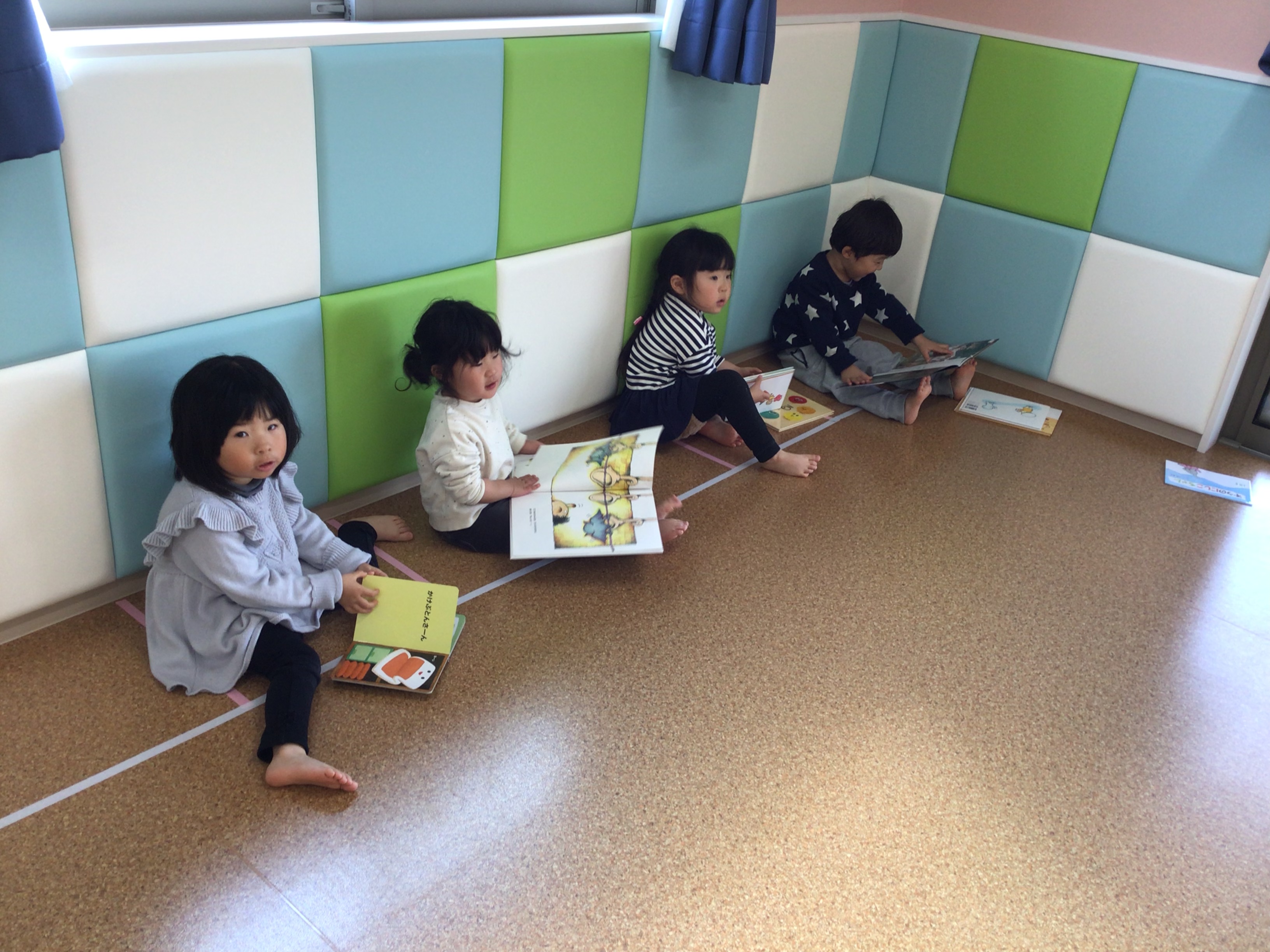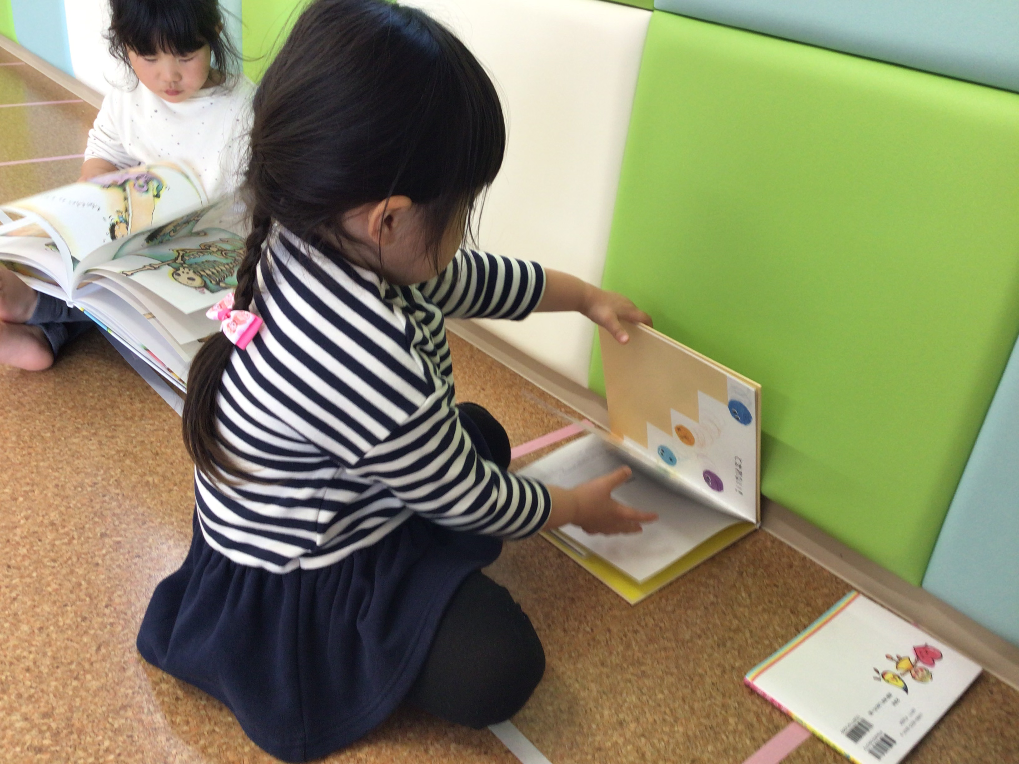 絵本をお友だち同士で読み合いっこしている時もあり、とても微笑ましいです![]()