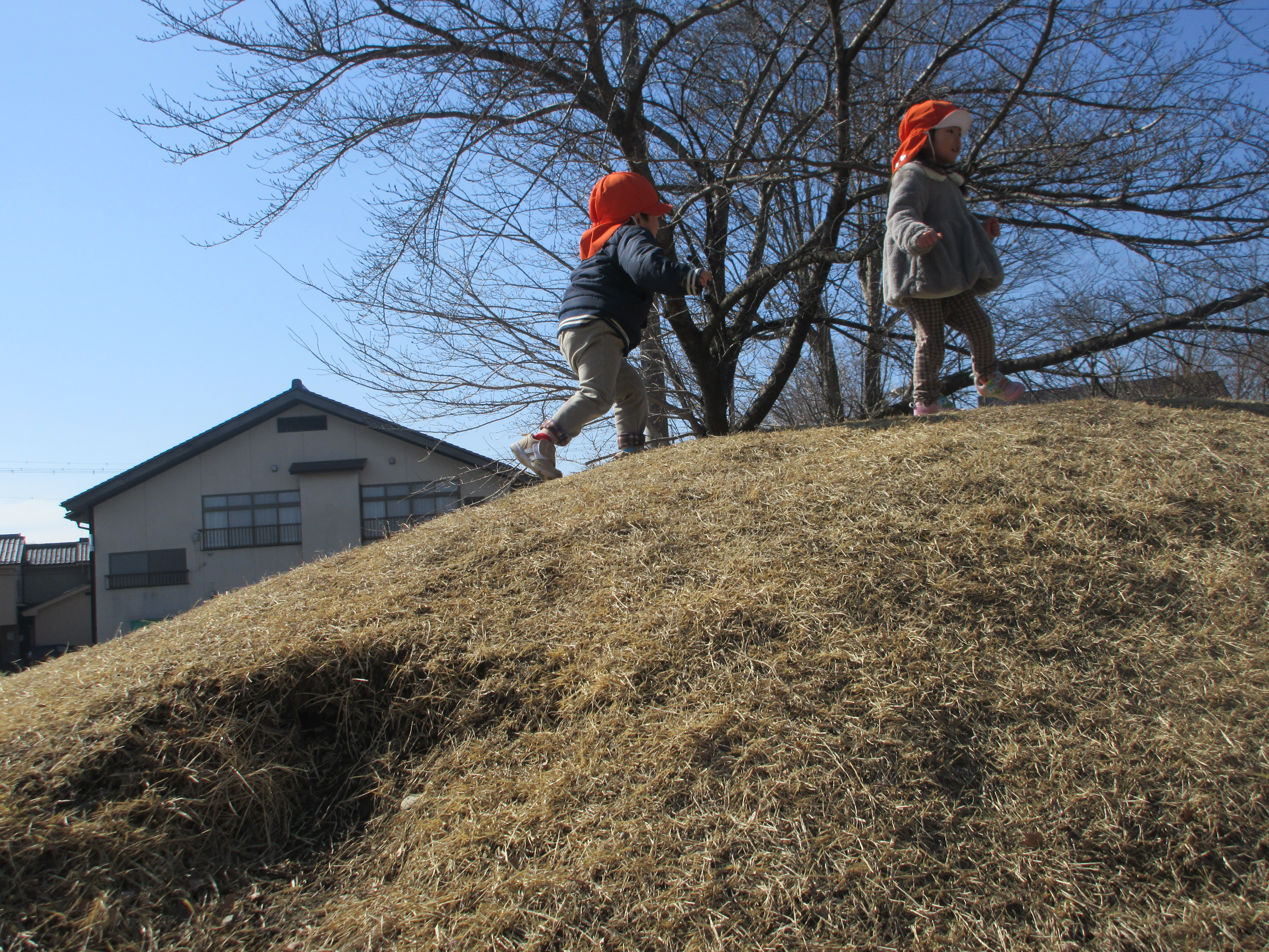 駆け上がってみたり、手も使ってよじ登ってみたりとても楽しそうです![]()