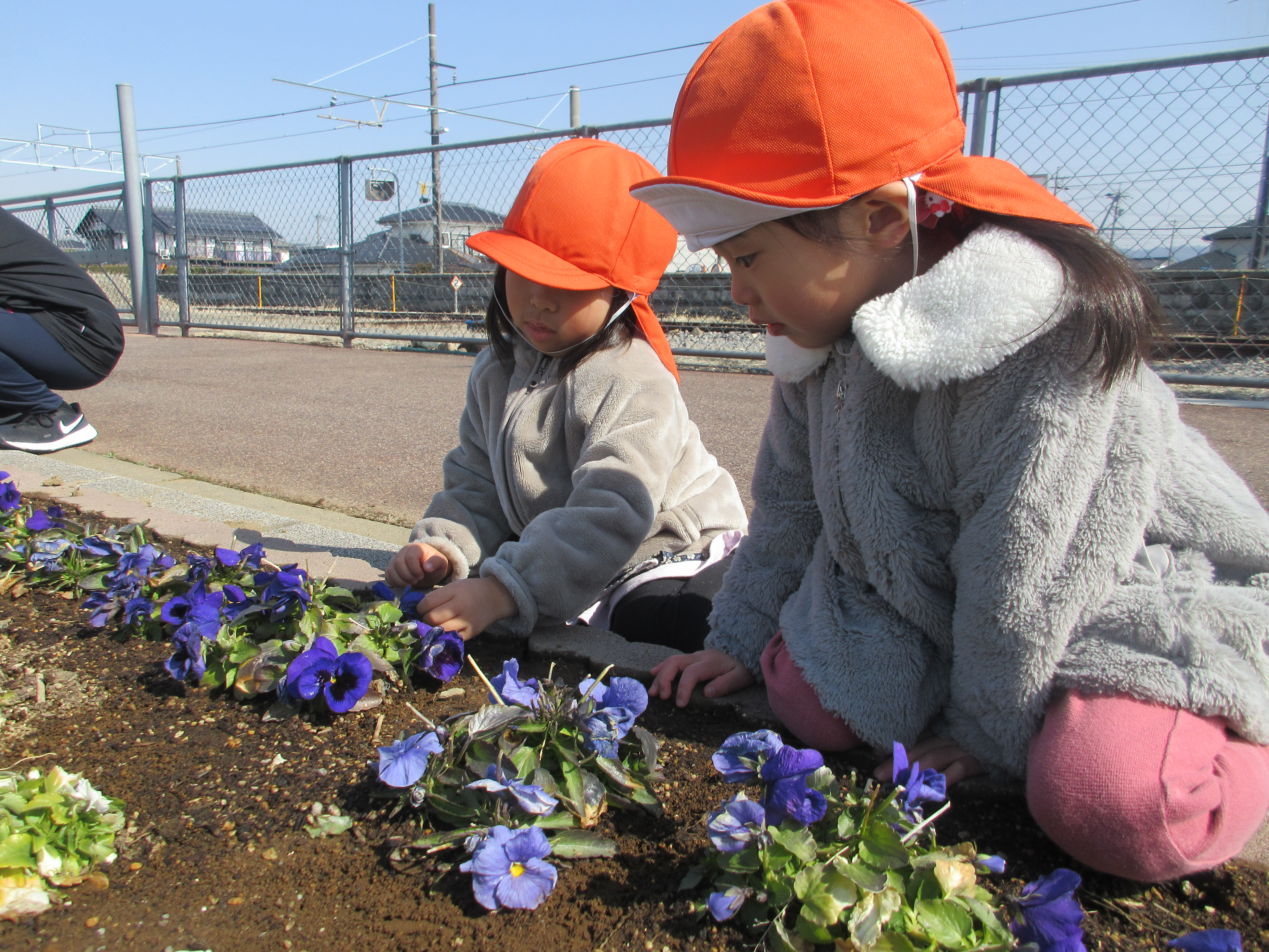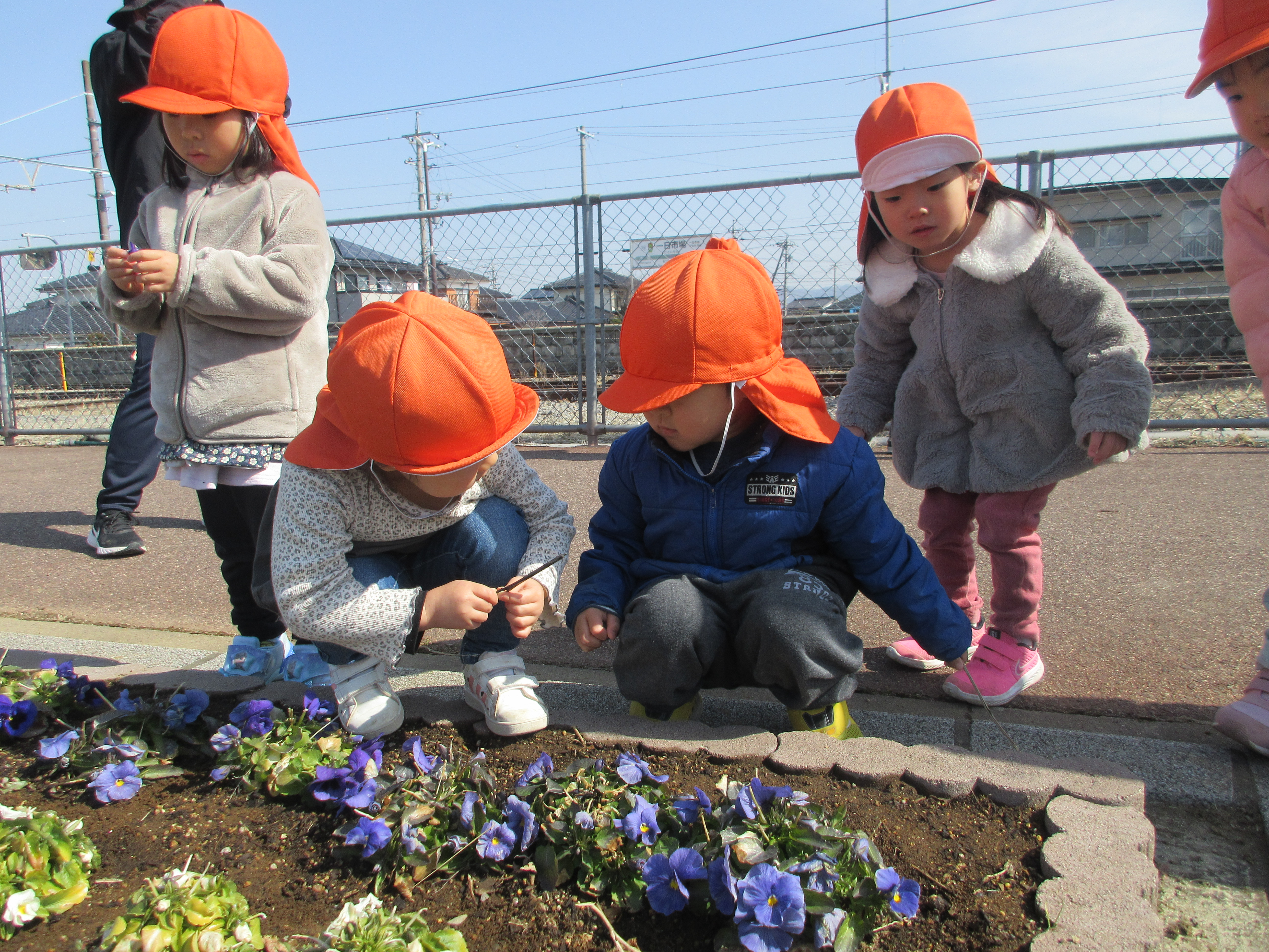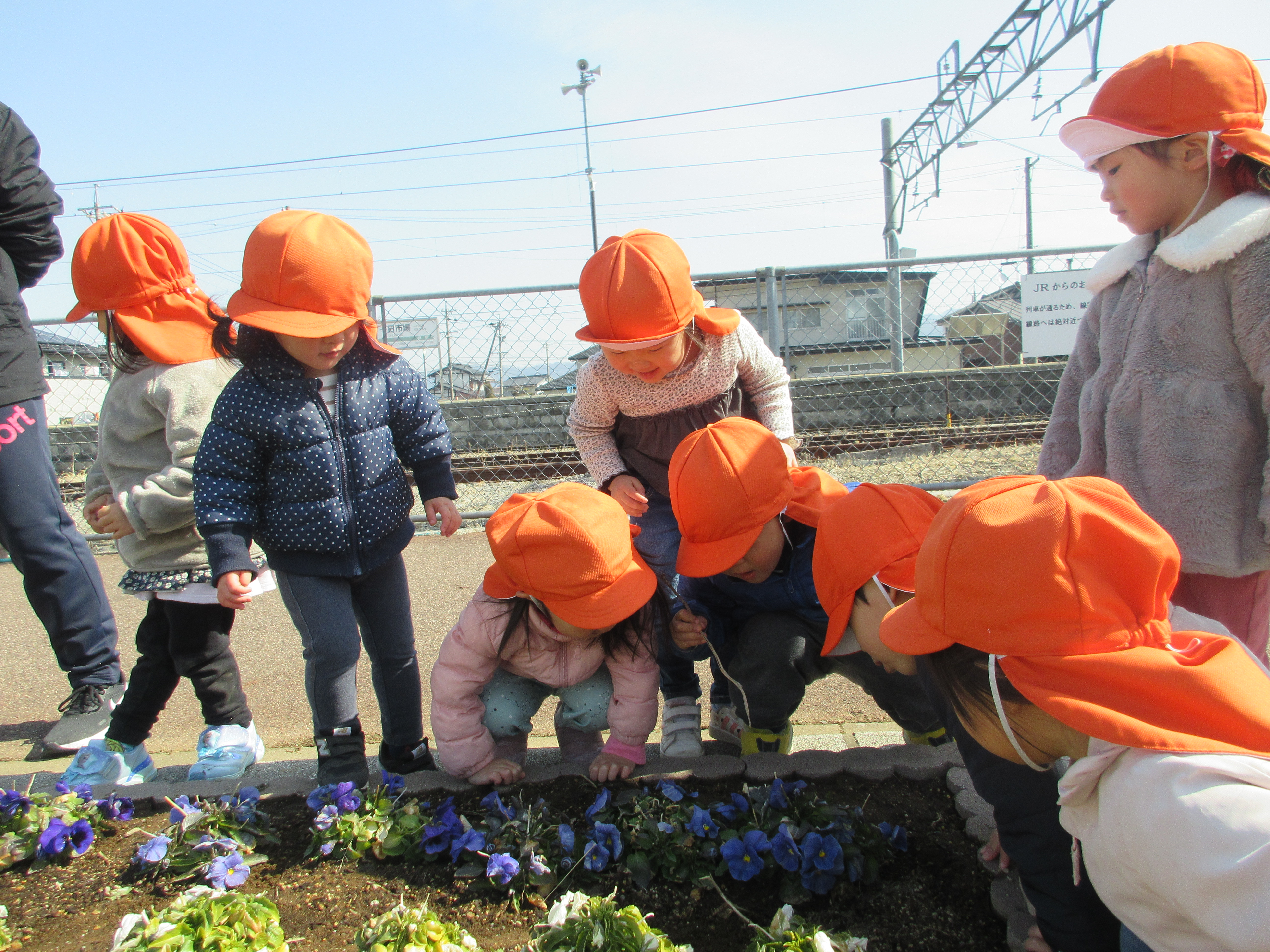 電車が来るまでの時間、みんなでお花の観察をしました![]()