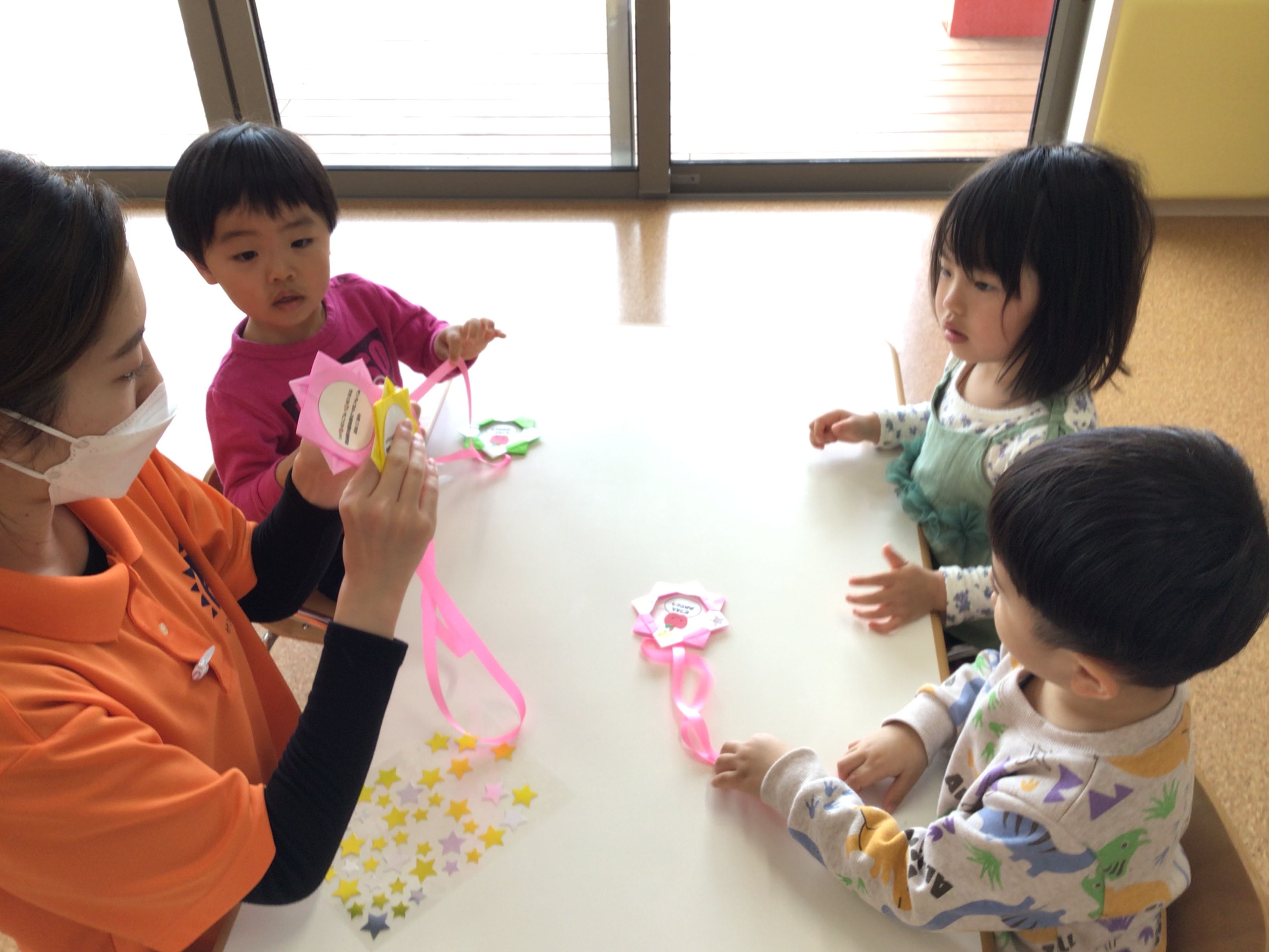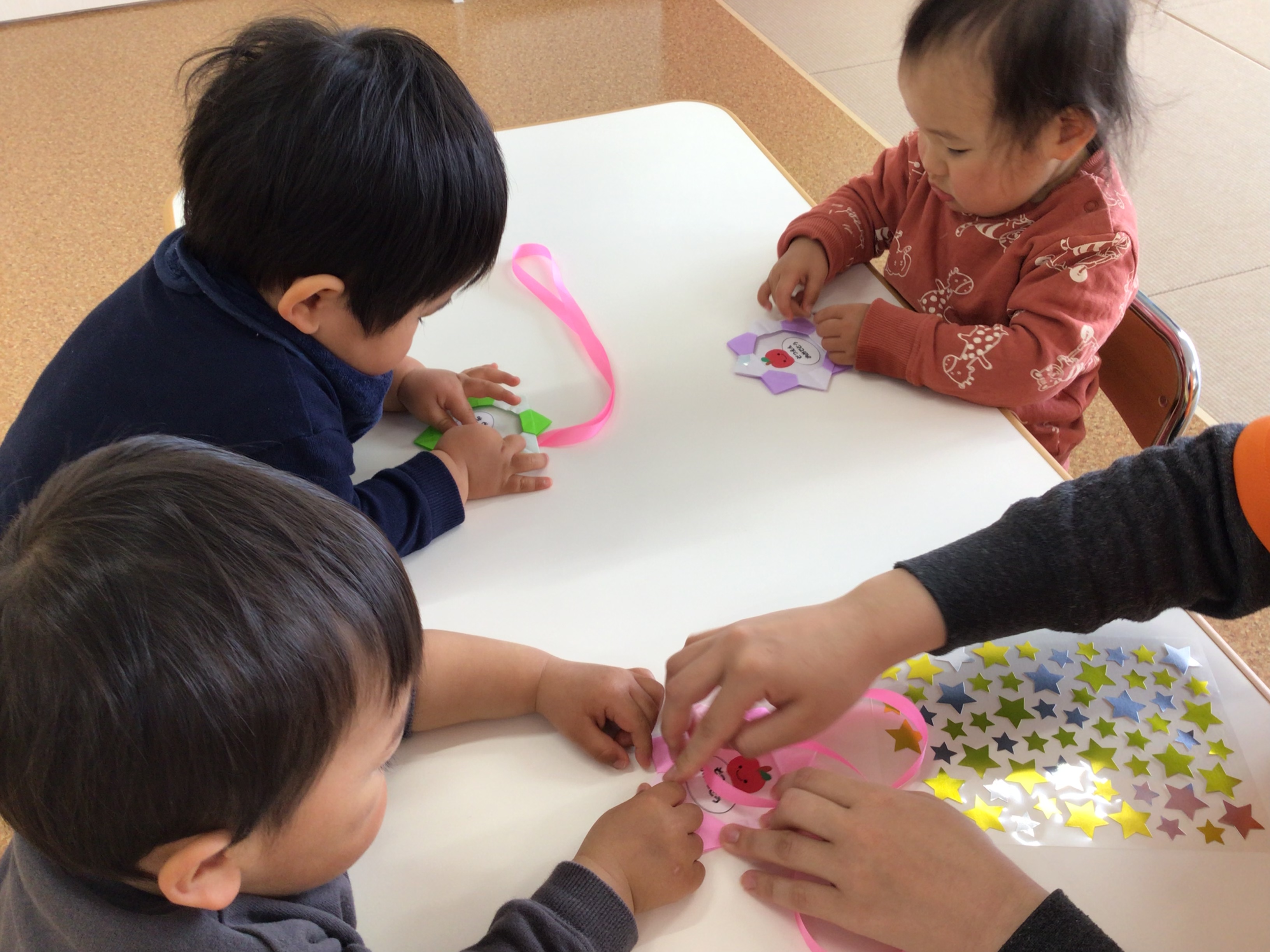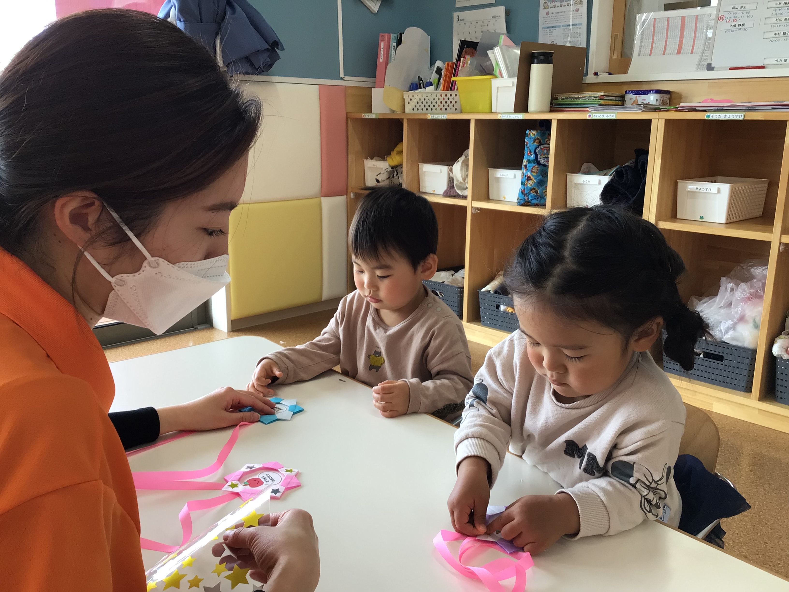 先生から貼る場所をよく聞いて指先で上手に貼ることができました![]()