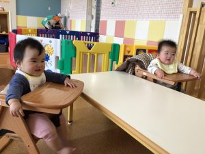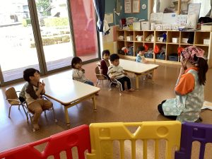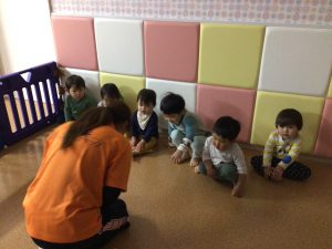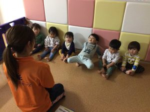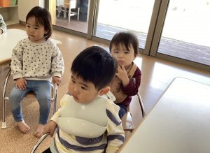 小さないちごぐみさんですが、しっかりと座っているりんごぐみのお兄さんお姉さんの姿を見て真似っこ。上手に座って挨拶ができました![]()