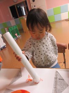 スタンプの端の方はインクが付きにくくて苦戦する姿も見られましたが、『ぎゅっ』と指や手のひらの力を使って模様を付けていました![]()