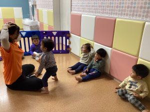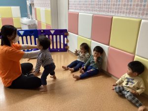 保育士の手を動きを真剣に見たり、真似っこしたりしています![]()