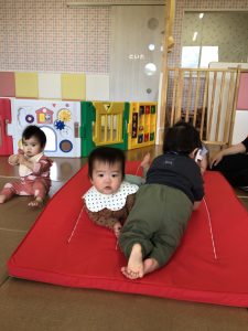 少し高さのあるマットを、手足の力をたくさん使って一生懸命登っていました![]()