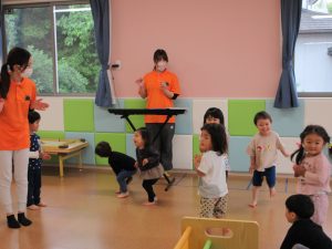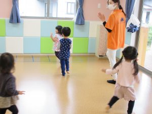 担任が、ひとりひとりの発達段階に応じた遊びを考え、子どもたちに下ろしています![]()
