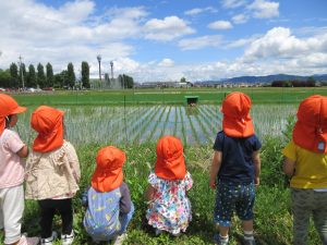 田んぼの中にはたくさんのオタマジャクシやアメンボがいて、子どもたちも「いたね!」と発見を楽しんでいます![]()