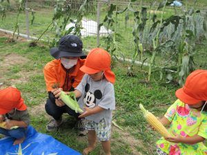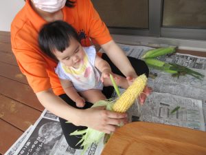 自分たちで頑張って剥いたとうもろこしの味は格別だったことでしょう