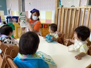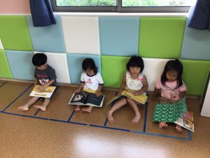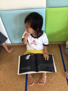 文字を読むのは難しいけれど、絵を見たり保育士が読んだ内容を覚えて声に出す子も✨