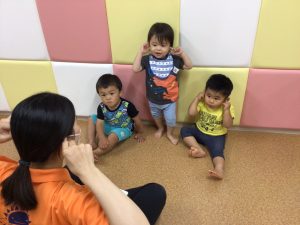 まずはみんなで『あたまかたひざポン』の手遊び