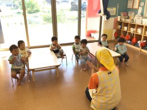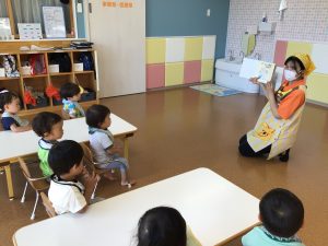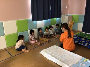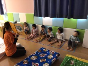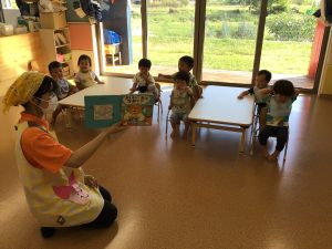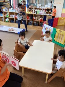 ノンタンが笑うと子どもたちもにっこり☺️、ノンタンがえ〜ん。。と泣くと顔をしかめて見ている子どもたち😢