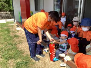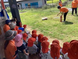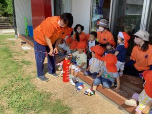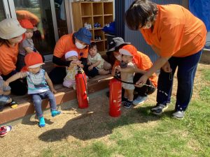 見る機会はあってもなかなか触ることはできない消火器に触れる事ができて、子どもたちも興味津々の様子でした