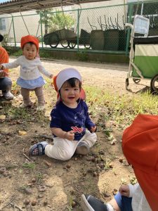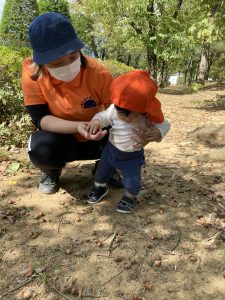 公園にはどんぐりがたくさん落ちていて、初めて触れるお友達も『なんだろう❣️」と興味津々で触っていました^^